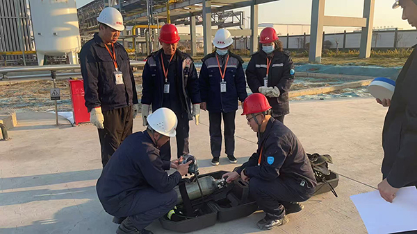 一、燃?xì)庑孤?yīng)急演練:快速響應(yīng)保安全 演練總指揮首先向參演人員詳細(xì)講解了燃?xì)庑孤?yīng)急預(yù)案內(nèi)容,重點(diǎn)強(qiáng)調(diào)了現(xiàn)場(chǎng)處置要點(diǎn)和注意事項(xiàng)。鍋爐車(chē)間燃?xì)庑孤?yīng)急演練正式啟動(dòng)。演練模擬車(chē)間內(nèi)發(fā)生燃?xì)庑孤┦鹿剩F(xiàn)場(chǎng)立即啟動(dòng)應(yīng)急預(yù)案。“正壓式空氣呼吸器是進(jìn)入泄漏現(xiàn)場(chǎng)的關(guān)鍵防護(hù)裝備,必須正確穿戴。”安全員現(xiàn)場(chǎng)演示了空氣呼吸器的使用方法,從檢查氣瓶壓力、佩戴面罩、調(diào)節(jié)頭帶到測(cè)試氣密性,每一個(gè)步驟都進(jìn)行了詳細(xì)講解。搶修人員按照規(guī)范要求,快速穿戴好空氣呼吸器,攜帶檢測(cè)儀器與防爆工具進(jìn)入現(xiàn)場(chǎng),迅速定位泄漏點(diǎn)并進(jìn)行應(yīng)急處置。